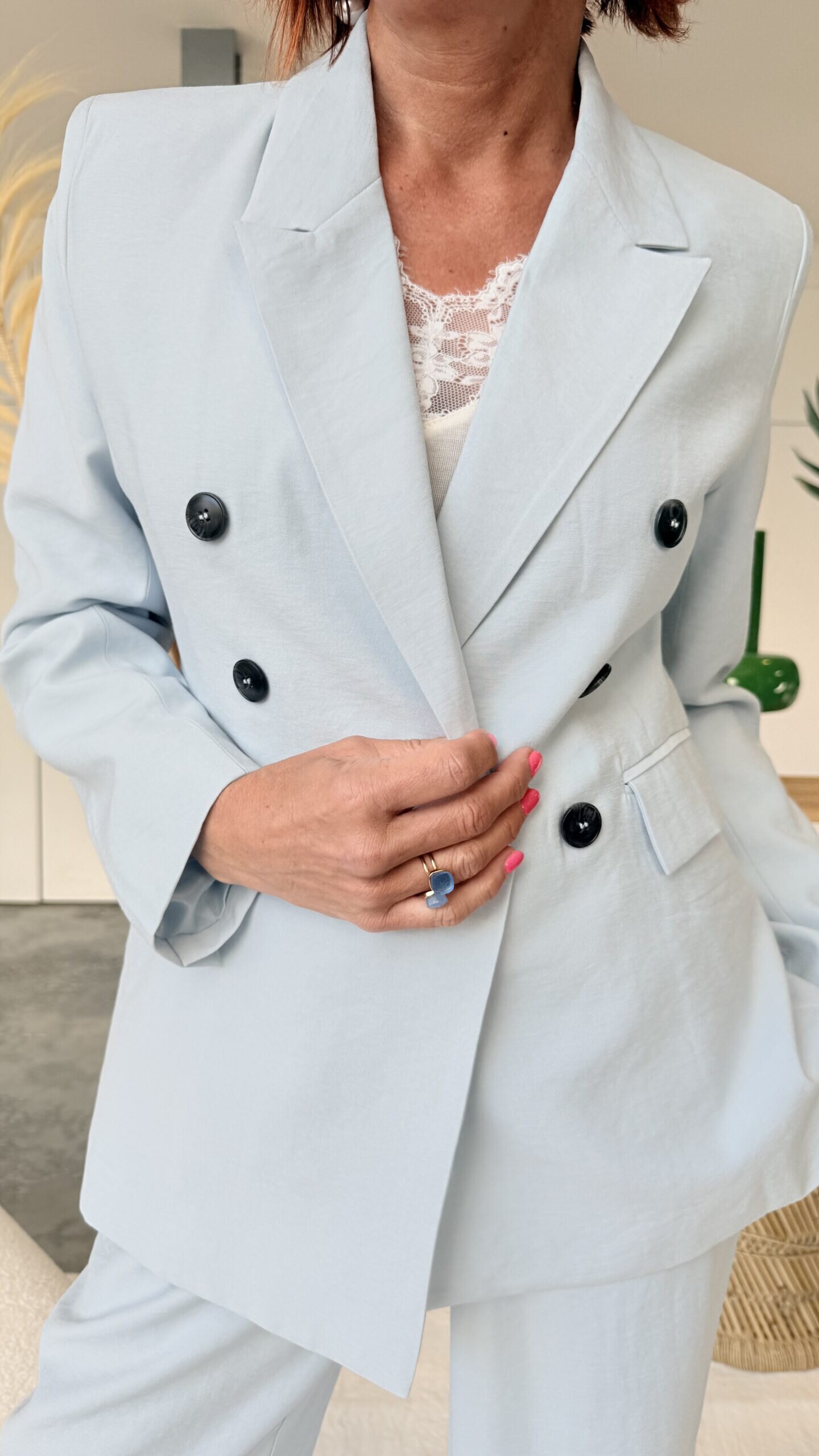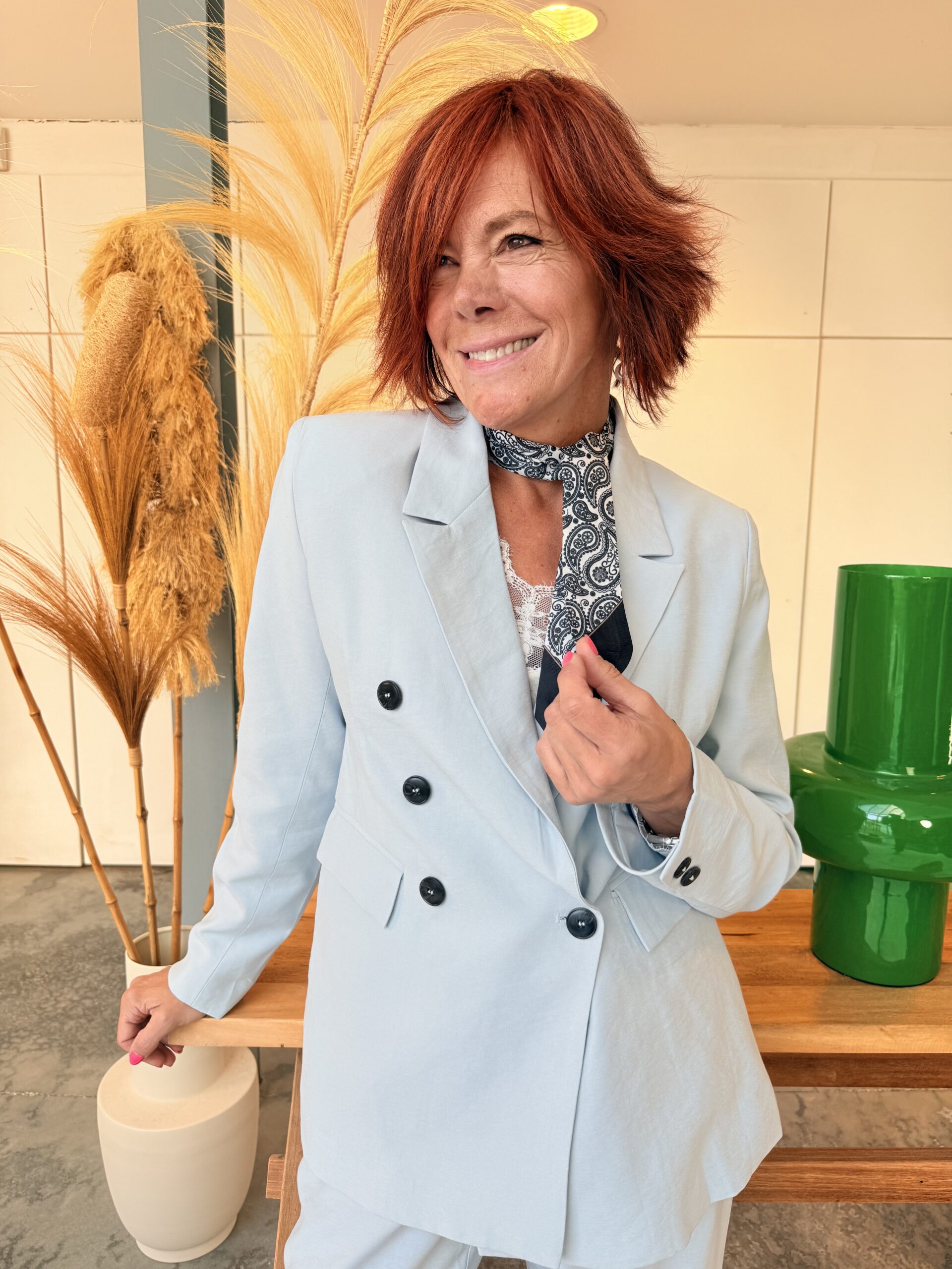 • Blazer boutonnage croisé et livré avec le le foulard
