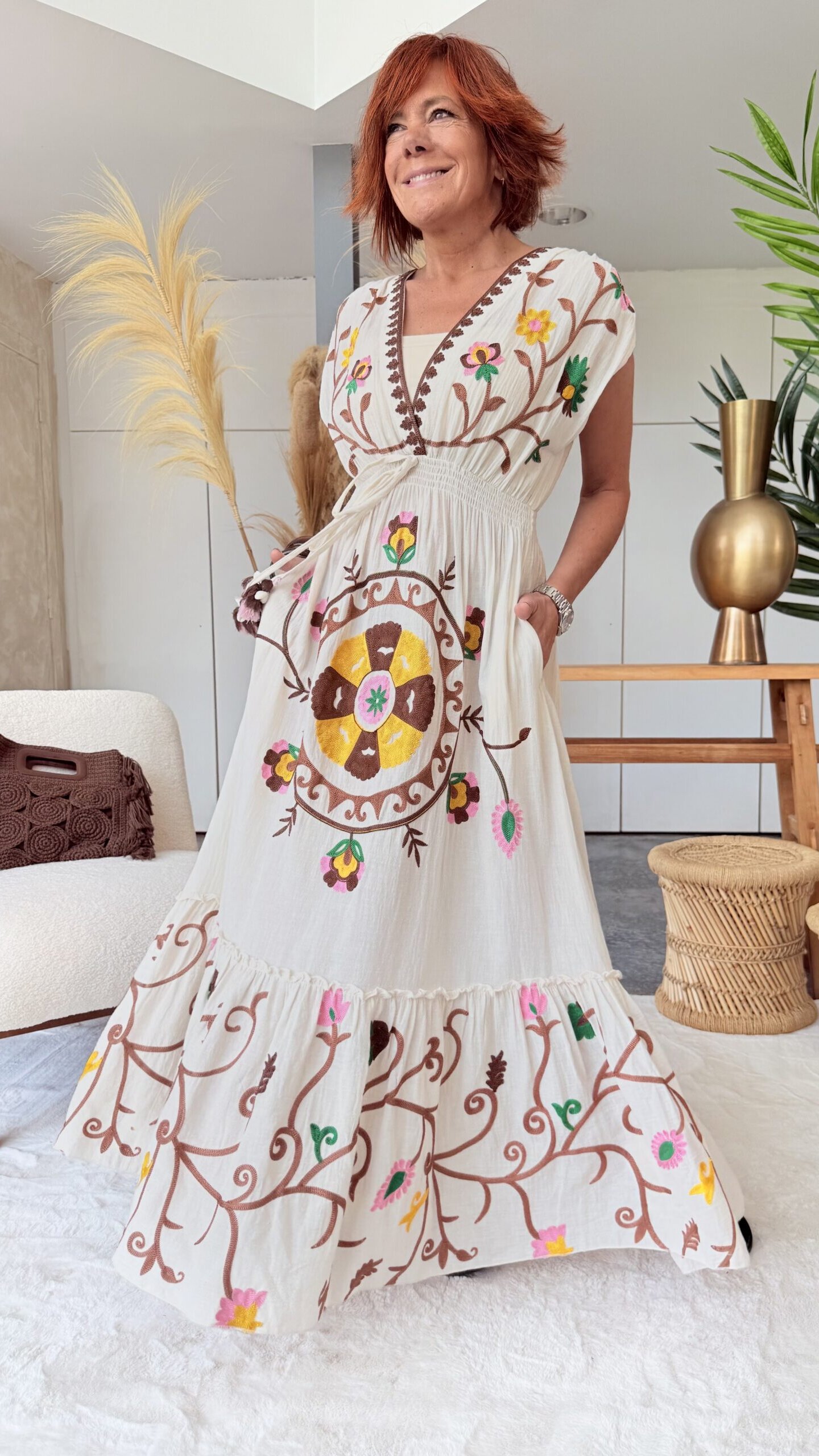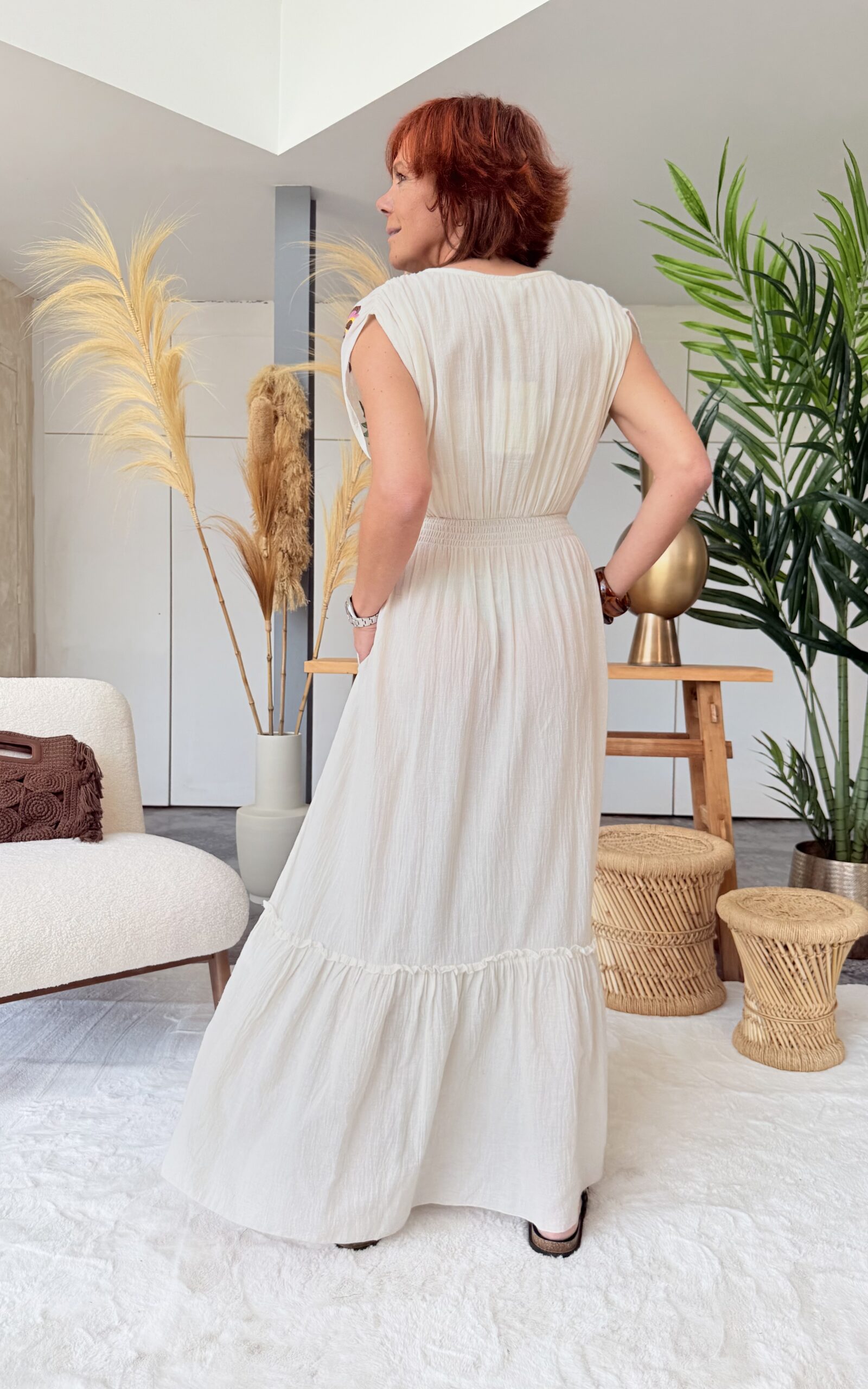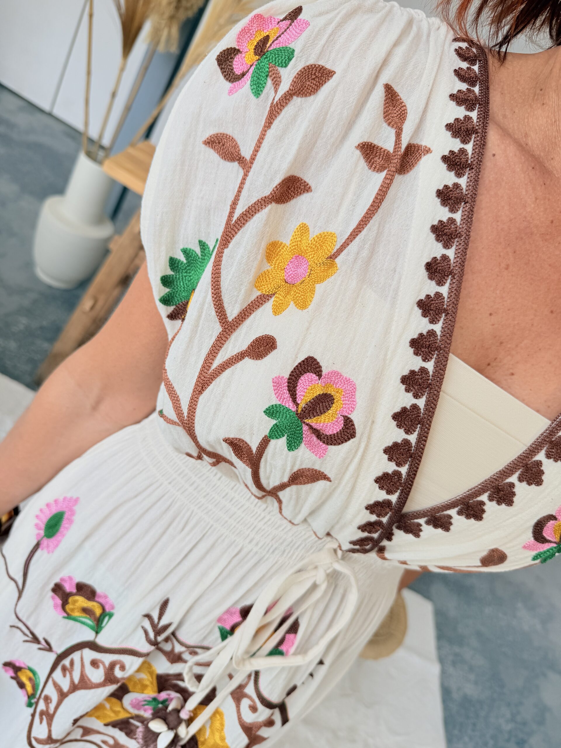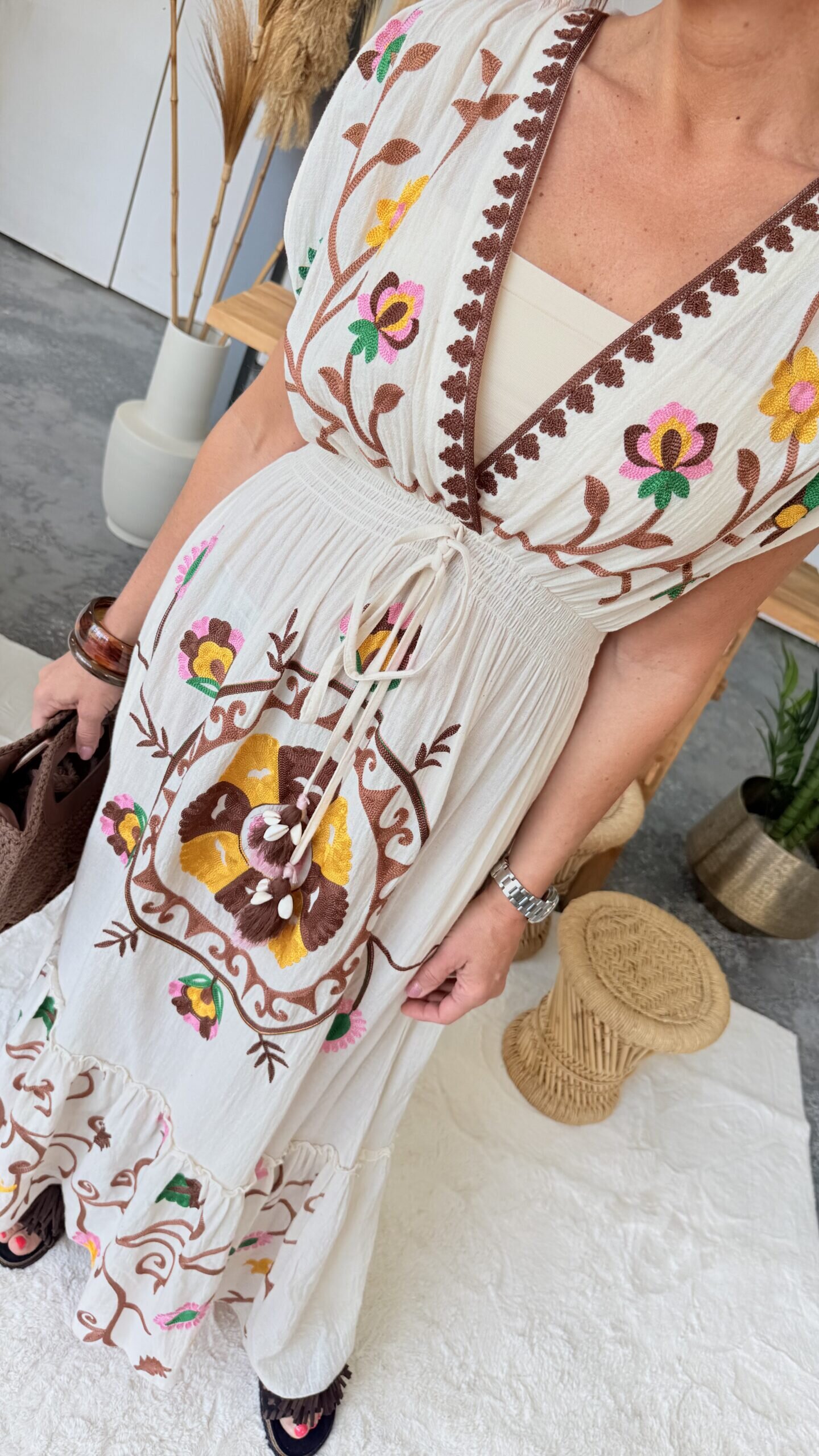 • Robe longue brodée.