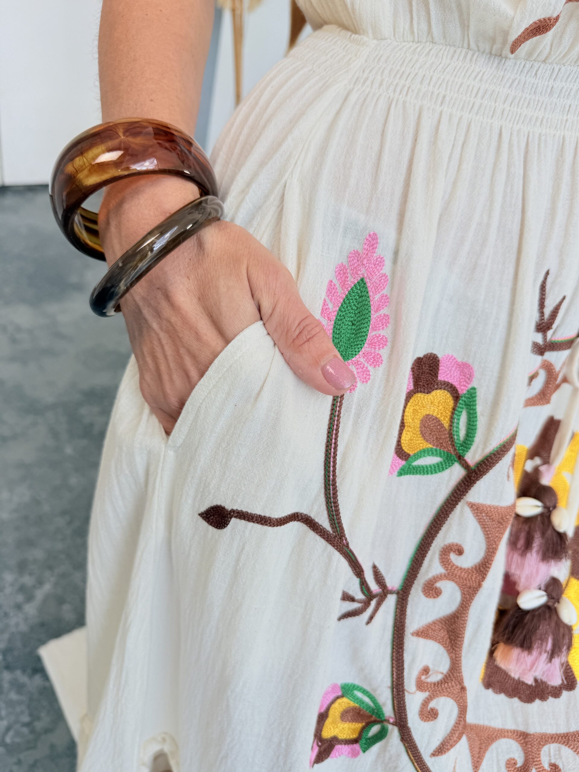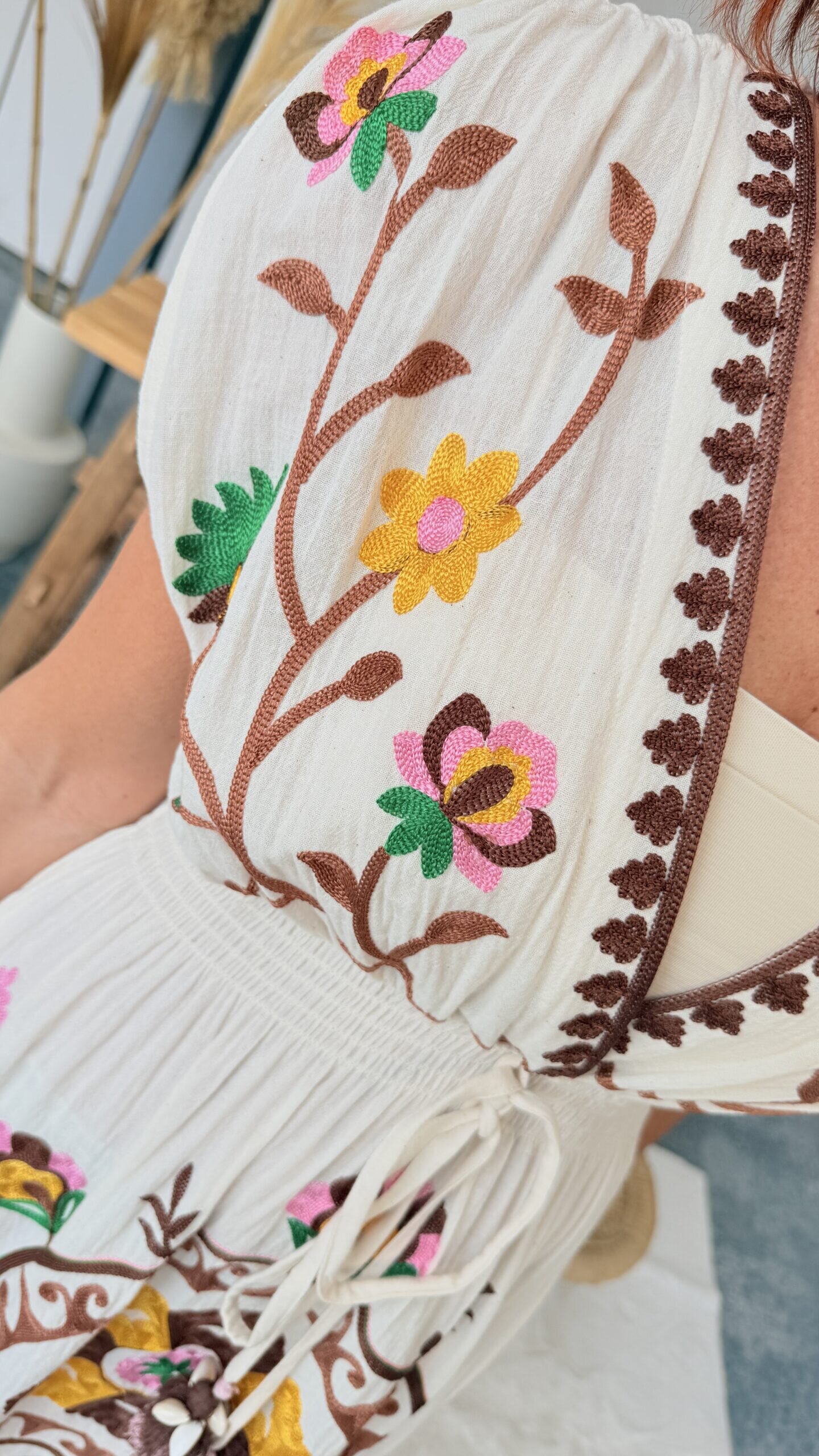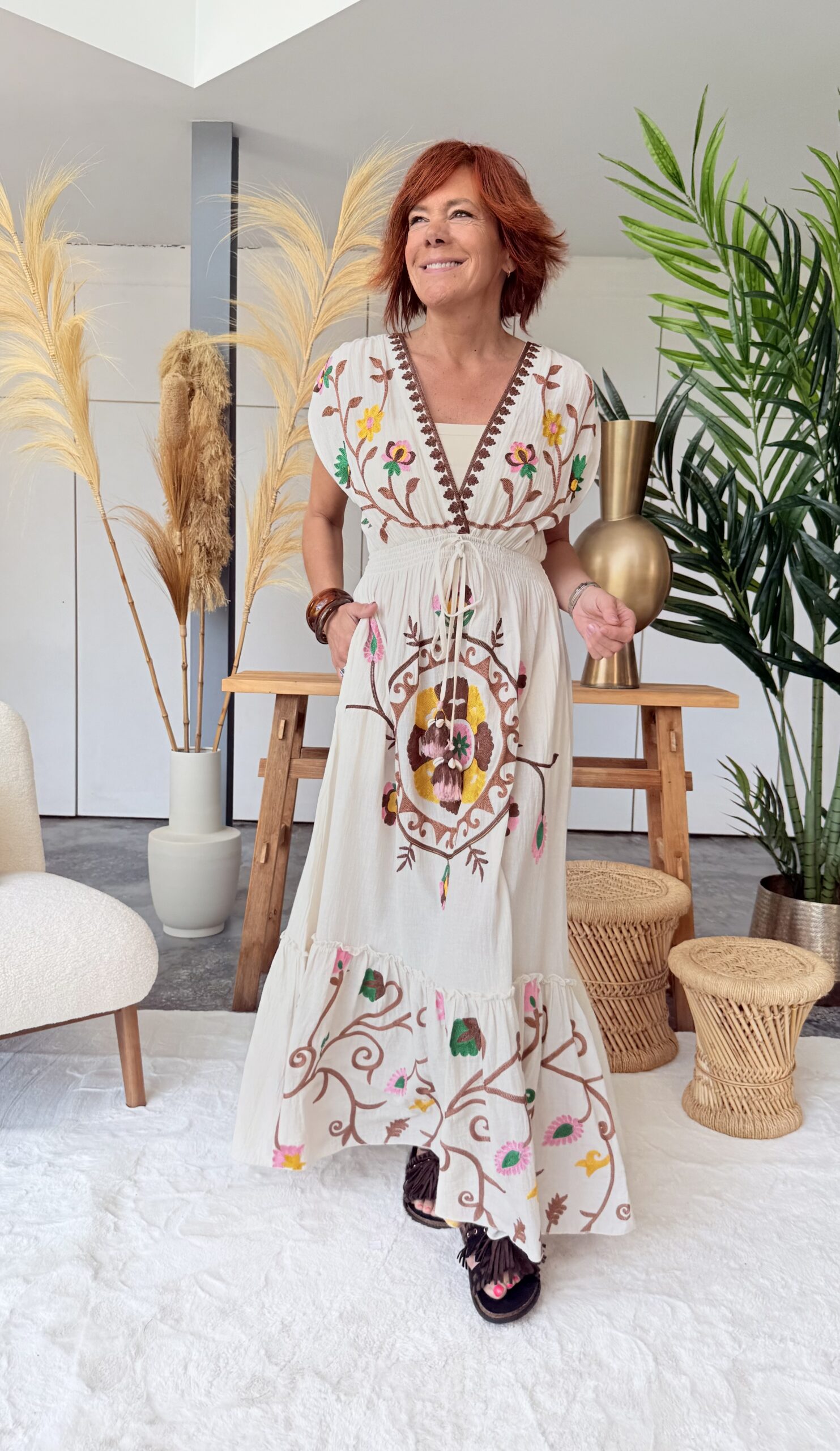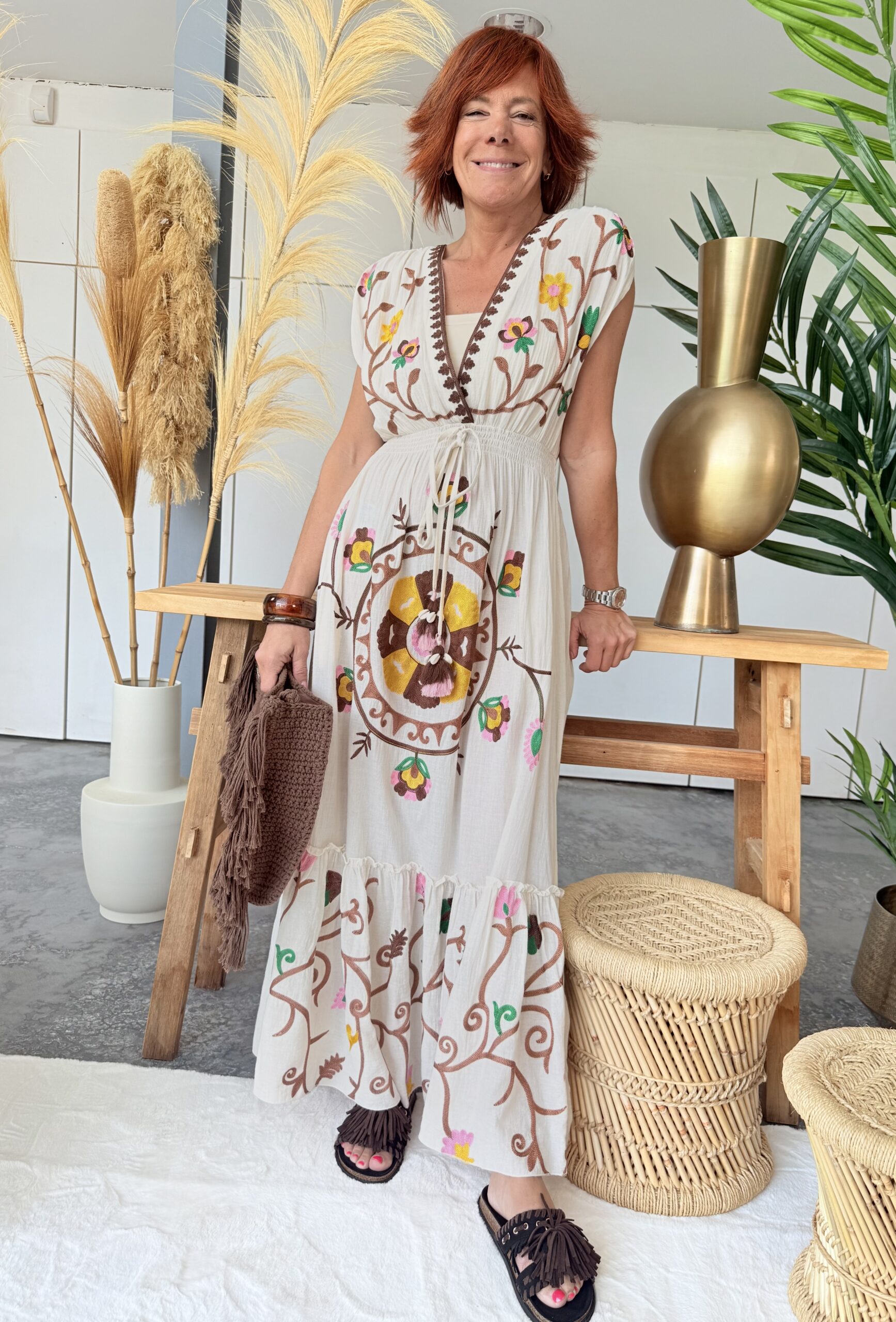 • Robe longue brodée.