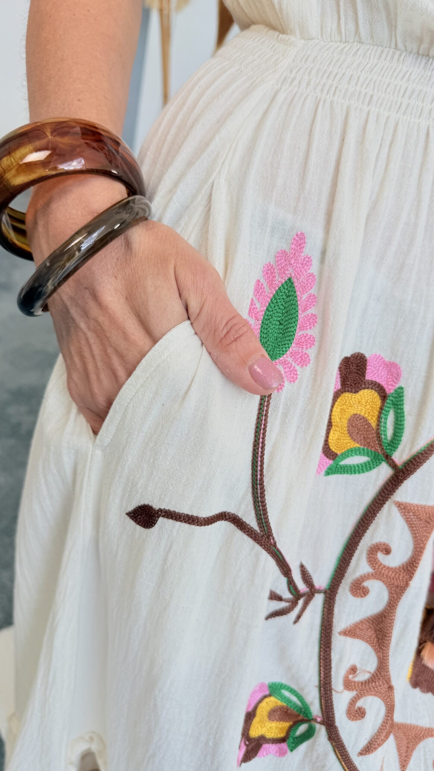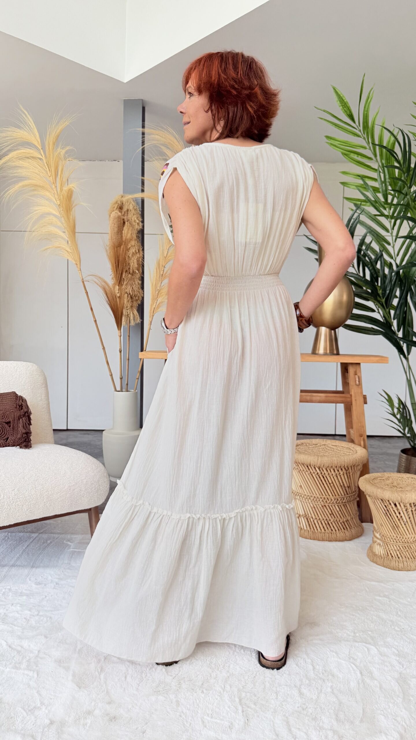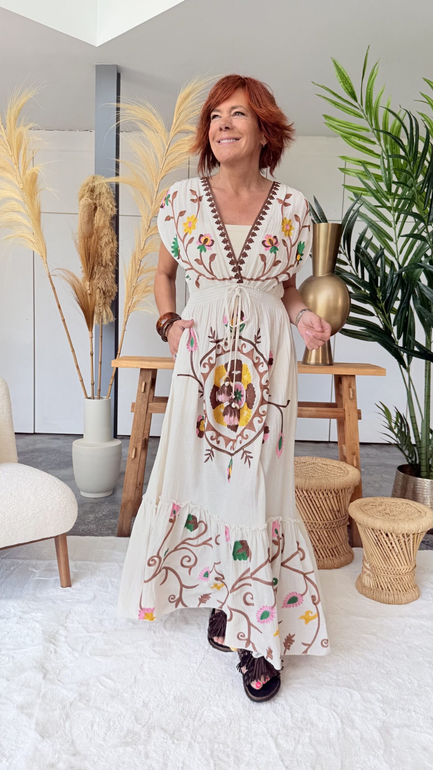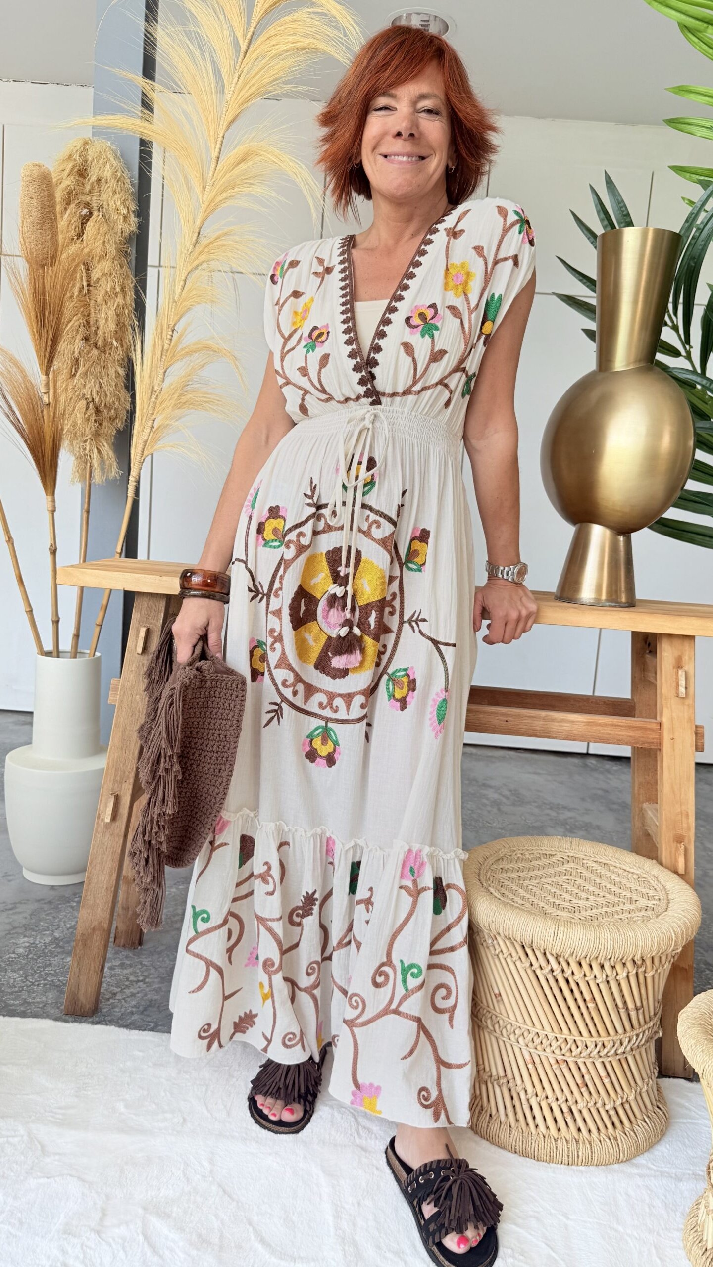 • Robe longue brodée.