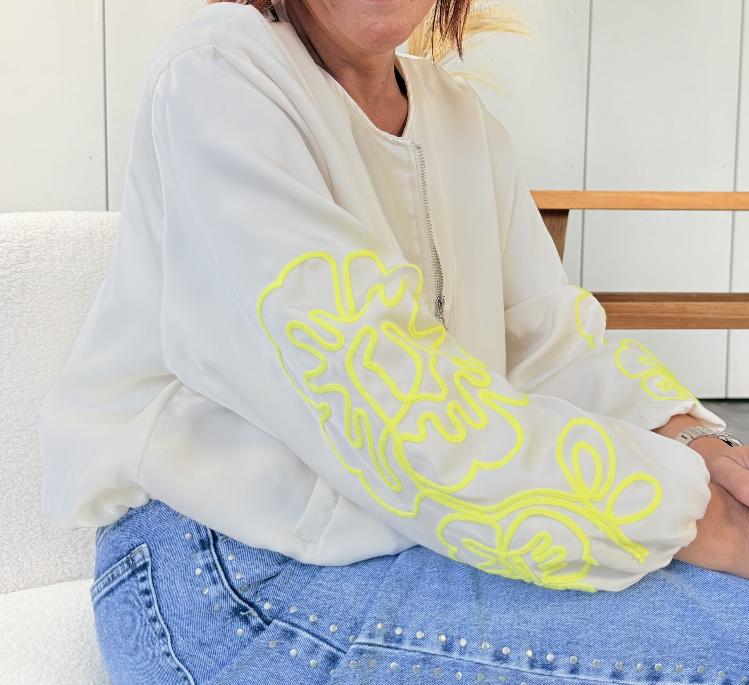 • Avec poche et broderie jaune fluo